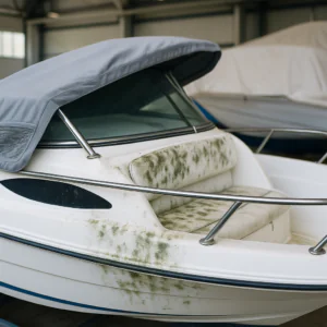 Concentrated snow weight on gunwales and windshields causes fiberglass stress cracking—micro-fractures that won’t become visible until spring gelcoat failure appears across the hull.